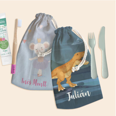 Confeccionados en tela algodón más napa poliéster e interior tela impermeable. Medida 26×20 cms.